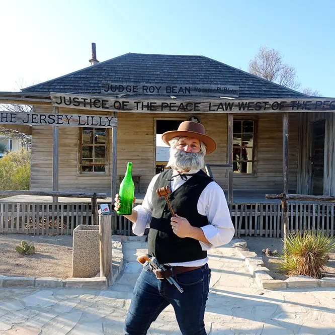 While you’re in this part of Texas, you gotta stop by old Judge Bean’s Jersey Lilly Saloon. See the original saloon where the “Law West of the Pecos” held court and the opera house he built in honor of the famous singer Lillian Langtry. Next door at the Visitor Center, see even more of his artifacts.